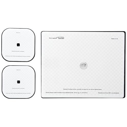 W zestawie podkładka pod mysz Brite-Mat i zestaw pasujących podkładek. Zestaw składa się z prostokątnej podkładki (0,3 x 19 x 24 cm) i dwóch prostokątnych podkładek (0,3 x 9,5 x 9,5 cm).