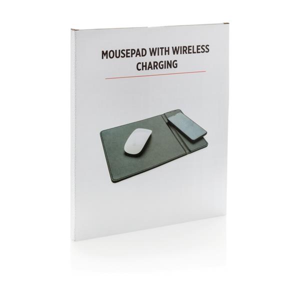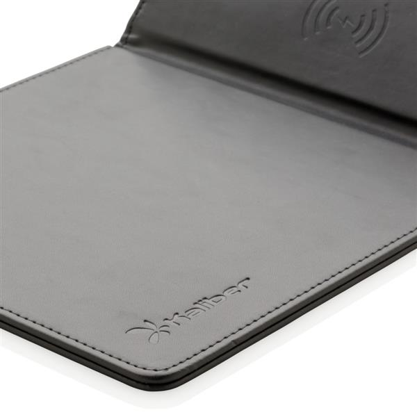 Podkładka pod mysz, ładowarka bezprzewodowa 5W, stojak na telefon, wykonana z PU, bezprzewodowe ładowanie jest kompatybilne ze wszystkimi urządzeniami posiadającymi możliwość ładowania indukcyjnego, wejście 5V/1A, wyjście bezprzewodowe 5V/1A 5W, kabel micro USB 40 cm w komplecie, ślad węglowy produktu: 1,98 kg CO2