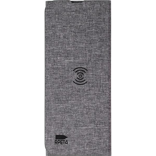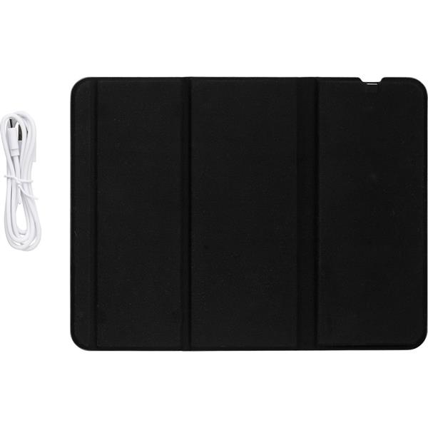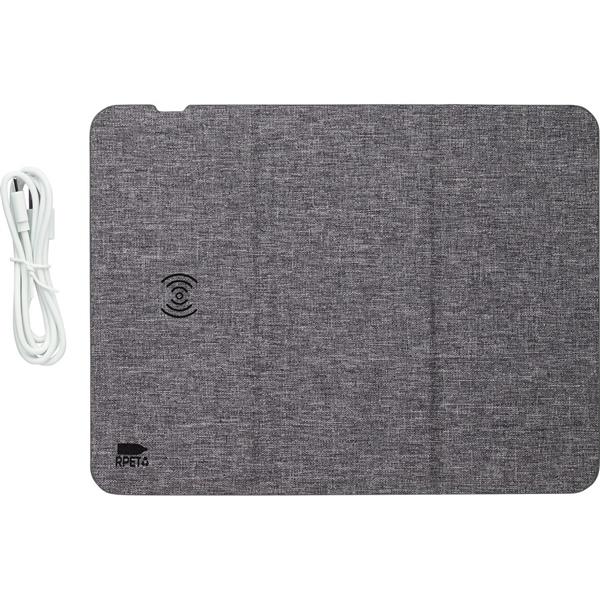 Podkładka pod mysz wykonana z poliestru RPET, ładowarka bezprzewodowa 10W, działa z telefonami posiadającymi możliwość ładowania indukcyjnego, stojak na telefon