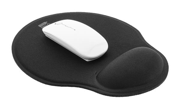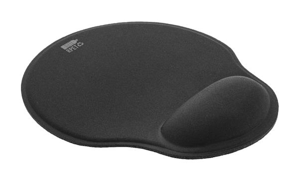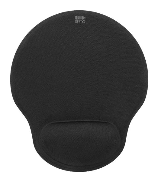 Podkładka pod mysz RPET z ergonomiczną podpórką pod nadgarstek i gumową, antypoślizgową podstawą.