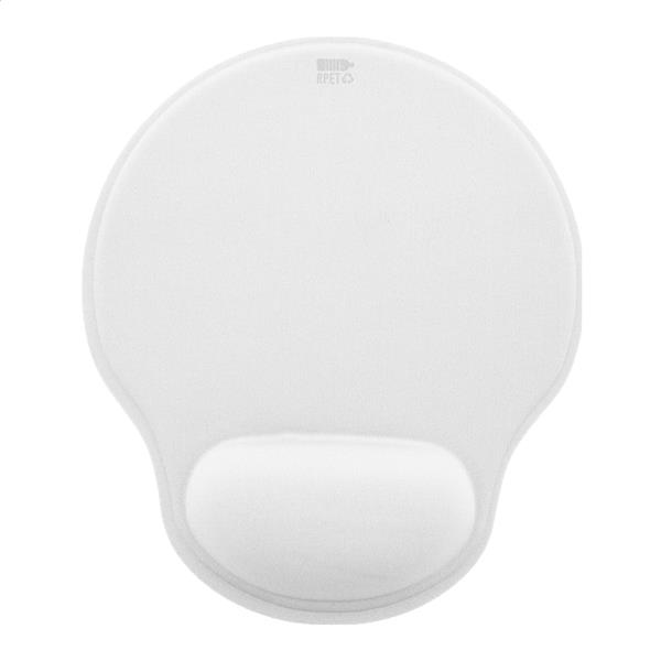 Podkładka pod mysz RPET z ergonomiczną podpórką pod nadgarstek i gumową, antypoślizgową podstawą.