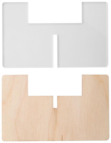 Świecznik ze sklejki brzozowej i przezroczystego akrylu. Dostarczany na płasko, bez świecy.