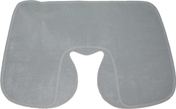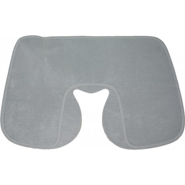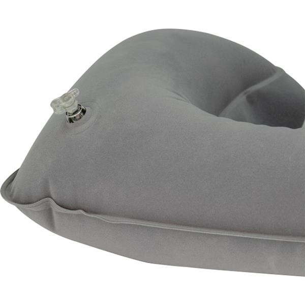 Welurowa, dmuchana poduszka podróżna o ergonomicznym kształcie. Wymiary na płasko: 41,5 x 26,5 cm, wymiary po napompowaniu: 34 x 25 x 10 cm.