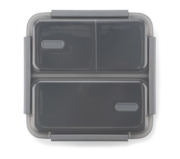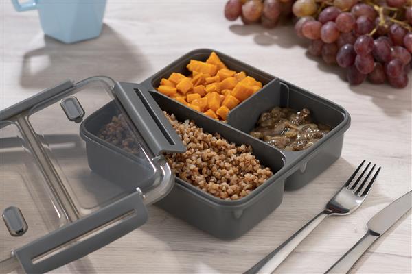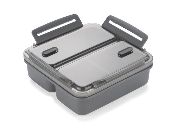 Pojemnik na lunch DUO posiada 2 główne komory i dodatkowy wyjmowany separator. Posiada uszczelkę w pokrywce. Zamykany na cztery zatrzaski. Pojemność pojemnika 1100 ml zmieści duży obiad. Wykonany z tworzywa polipropylenowego, bezpieczny w kontakcie z żywnością.