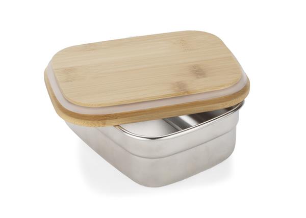 Pojemnik JOKI świetnie sprawdzi się do przechowywania żywności, a także do zapakowania gotowego posiłku i zabrania go ze sobą do pracy czy szkoły. Dużą zaletą pojemnika jest niepochłanianie zapachów pożywienia. Zamykany za pomocą bambusowej przykrywki. Wykonany ze stali nierdzewnej 304. Pojemność 470 ml.
