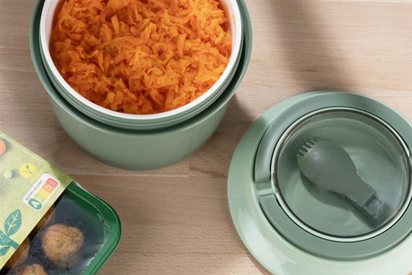 Pojemnik DOMMY to super rozwiązanie dla osób lubiących mieć domowe jedzenie zawsze przy sobie. Idealnie sprawdzi się też w podróży, ze względu na kompaktowy rozmiar, sporą pojemność i wygodne uchwyty do przenoszenia. Posiada dołączone sztućce. Pojemnik składa się z dwóch komór: dużej głównej oraz wyciąganej mniejszej. Można używać w mikrofalówce.