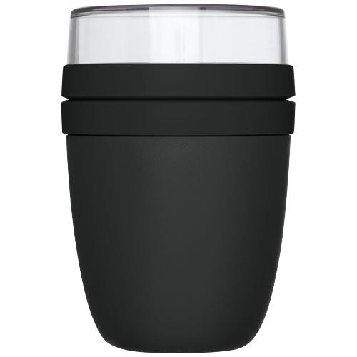 Pojemnik na lunch z dwiema komorami, aby oddzielenie przechowywać różne składniki. Oba pojemniki mają oddzielne pokrywy i dlatego pozostają czyste. Pojemność górnego przezroczystego pojemnika wynosi 200 ml, co oznacza, że może pomieścić około 75 gramów żywności w formie stałej. Pojemność dolnego pojemnika wynosi 500 ml. Wykonane z trwałego materiału, dzięki czemu mogą być przechowywane w zamrażarce oraz stosowane w kuchence mikrofalowej (należy zdjąć pokrywę) i zmywarce. Górnego przezroczystego pojemnika nie należy używać w kuchence mikrofalowej. Wodoszczelne. Nie zawiera BPA.