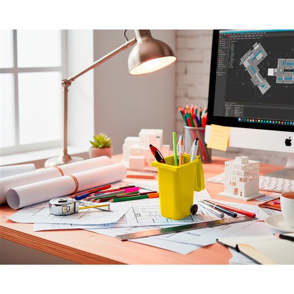 Pojemnik na przybory do pisania „kontener na śmieci” na kółkach, posiada pokrywkę i matowe wykończenie, produkt wykonany z PP