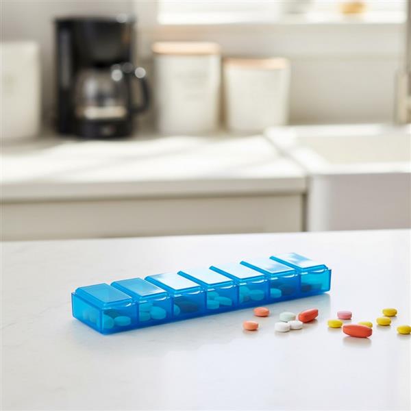 Półprzezroczysty pojemnik na tabletki z 7 przegrodami