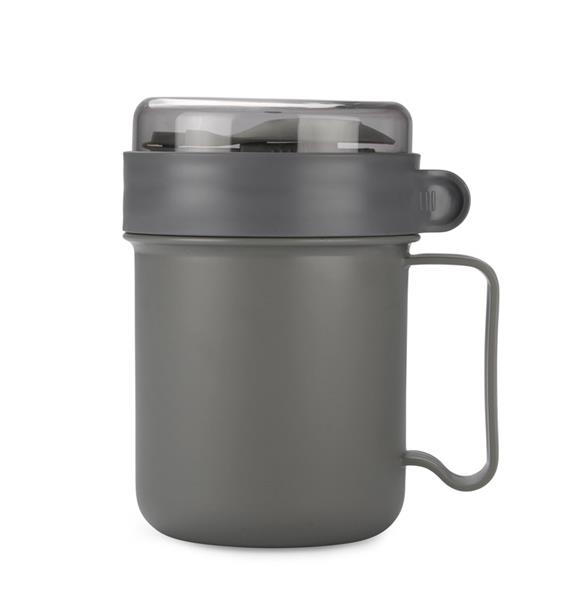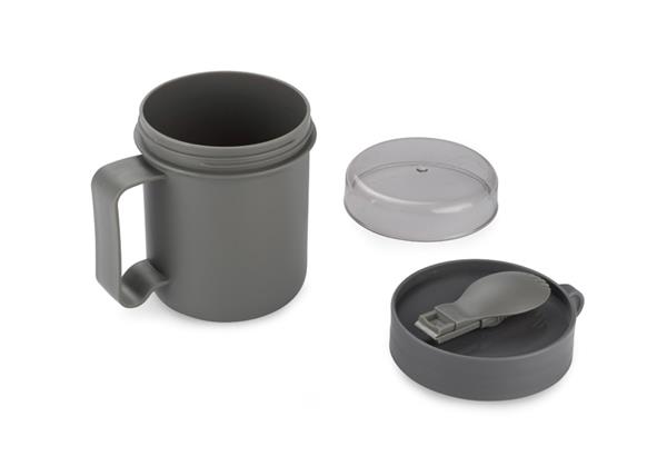 Pojemnik na zupę NODSY to przydatny i praktyczny gadżet. To znakomite rozwiązanie aby zabrać ze sobą zupę na przykład do pracy. Posiada wygodny uchwyt i dołączony składany łyżko-widelec. Pojemnik nadaje się do użycia w kuchenkach mikrofalowych, zmywarkach a także można w nim mrozić. Pojemność 500 ml.