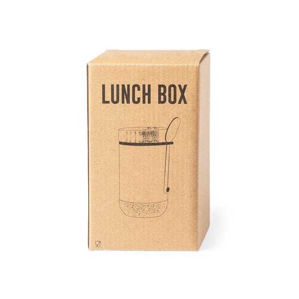 Pojemnik na żywność 450 ml z łyżką ze stali nierdzewnej w komplecie, ścianki ze stali nierdzewnej, bambusowe wieczko i korkowy detal, leakproof