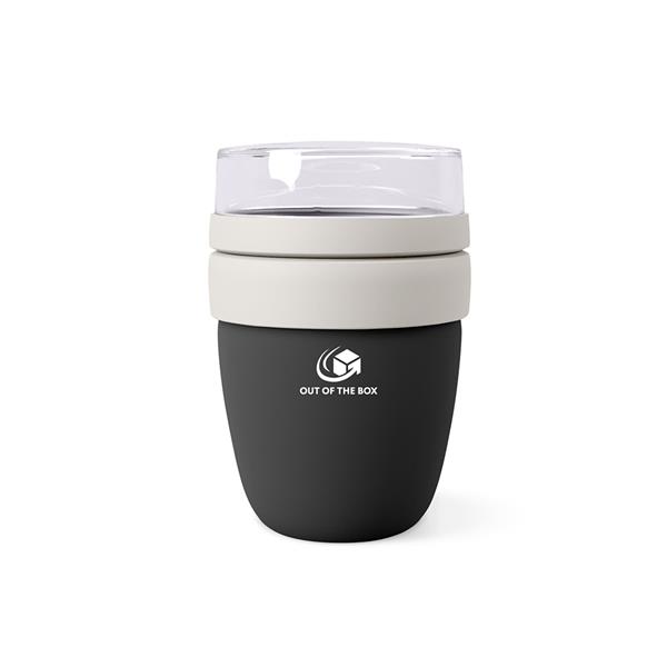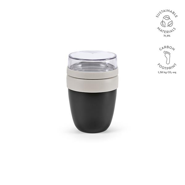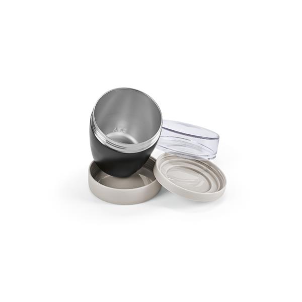 Ten pojemnik na żywność ma 2 komory: dolną o pojemności 530 ml (430 ml netto) ze stali nierdzewnej pochodzącej z recyklingu i plastikową pokrywkę o pojemności 230 ml (110 ml netto). Podwójne ścianki i owalny kształt idealny do zup i grzanek. Szczelna pokrywka pozwala zabrać go ze sobą wszędzie.