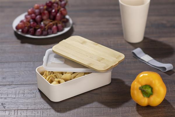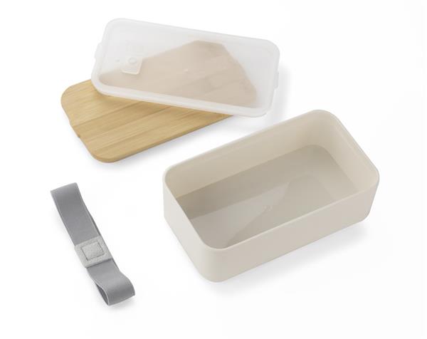 Pojemnik na żywność SINGLE wykonany jest z tworzywa, posiada bambusową przykrywkę i gumkę zapobiegającą przypadkowemu otwarciu. Posiada jedną komorę. Pojemnik może być używany w zmywarce, kuchence mikrofalowej i zamrażarce.