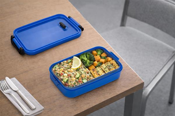 Pojemnik lunchowy TAPAS mieści 850 ml i jest zamykany na dwa boczne klipsy, które zapewniają szczelność oraz stabilność podczas przenoszenia. Pokrywka posiada zintegrowany silikonowy zawór, umożliwiający bezpieczne wyrównanie ciśnienia, np. po podgrzaniu posiłku. Praktyczny i wygodny – idealny do pracy, szkoły lub na wynos.