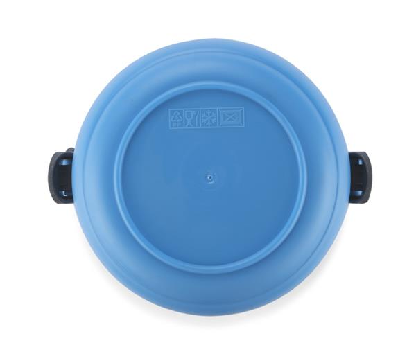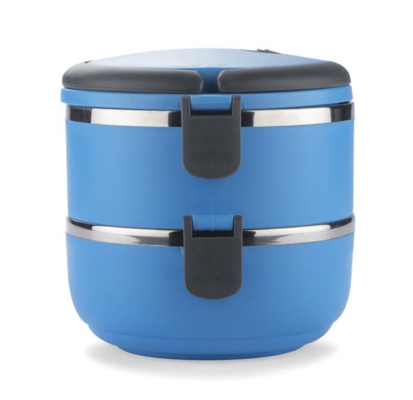 Pojemnik z wnętrzem ze stali nierdzewnej podzielony na dwie komory, które składamy jedną na drugą, co zapewnia poręczne i wygodne przenoszenie dwudaniowych posiłków. Górna komora wyposażona w uszczelkę. Uchwyty z tworzywa sztucznego z możliwością złożenia. Łączna pojemność: 1400 ml.