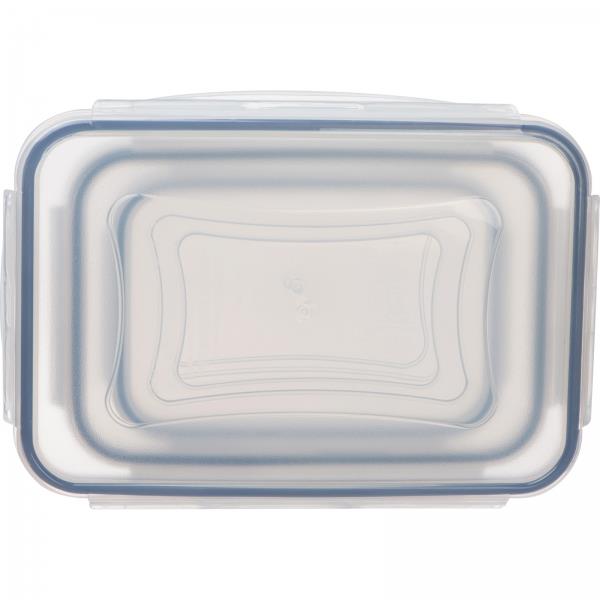 Zestaw pojemników do przechowywania żywności składający się z 3 szt. Pojemniki wykonane z plastiku ze szczelnym zamknięciem. Rozmiary pojemników: duży 1,5l; średni 1l; mały 0,5l.