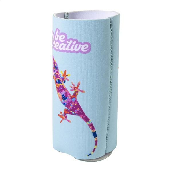 Pokrowiec termiczny z neoprenu RPET na puszkę aluminiową 0,5 l, wykonany na zamówienie. Z grafiką nadrukowaną metodą sublimacji. Min. ilość: 50 szt.