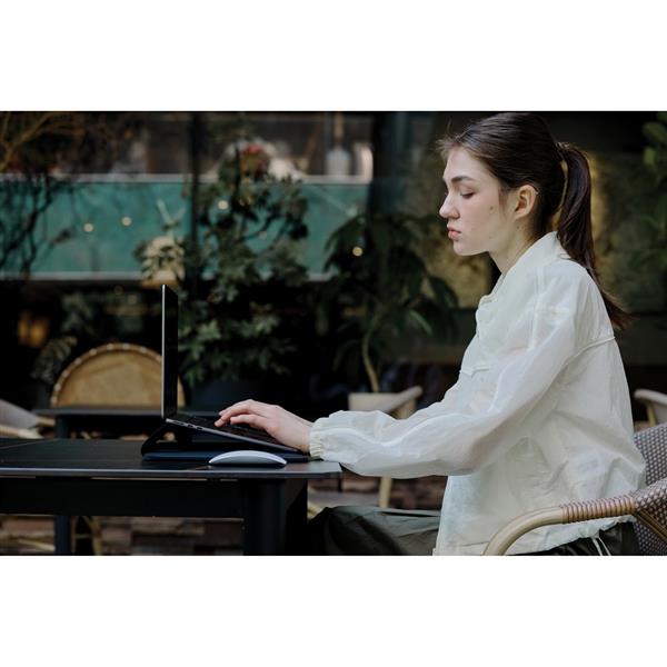 Pokrowiec na laptopa 14”, stojak na laptopa, z tyłu kieszeń na drobne akcesoria, wykonany z materiałów z recyklingu, wzór zastrzeżony®