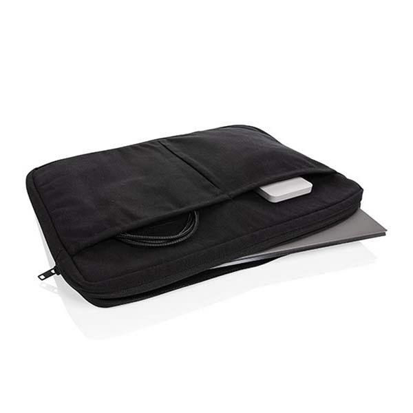 Pokrowiec na laptopa 15.6”, 2 kieszenie przednie, wykonany z bawełny z recyklingu o gramaturze 340 gsm, posiada znacznik AWARE™, który gwarantuje, że wykorzystane materiały pochodzą z recyklingu, 2% wpływów z każdego sprzedanego produktu z kolekcji Impact jest przekazywane na rzecz Water.org, ślad węglowy produktu: 2,19 kg CO2