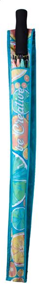Własnego projektu pokrowiec na parasol pełnowymiarowy z paskiem na ramię. 190T pongee. Cena zawiera nadruk sublimacyjny. Min. ilość: 50szt.