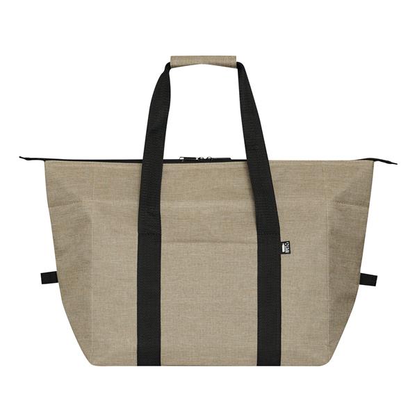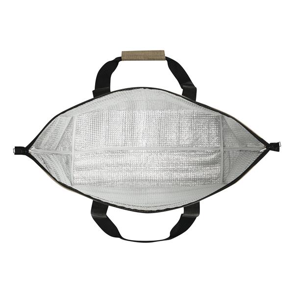 Torba termoizolacyjna POLAR wykonana z tworzywa sztucznego pochodzącego z recyklingu (RPET). Posiada izolowaną komorę główną z dwukierunkowym zamkiem błyskawicznym, 1 wsuwana kieszeń z przodu oraz wzmocnione uchwyty do przenoszenia. Ma także możliwość rozszerzenia przestrzeni do przechowywania poprzez odpięcie górnych krawędzi torby przymocowanych z obu stron.