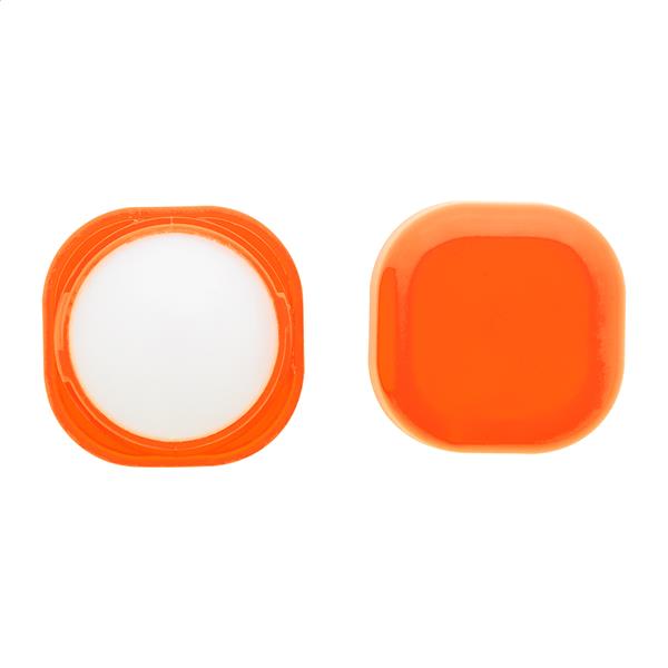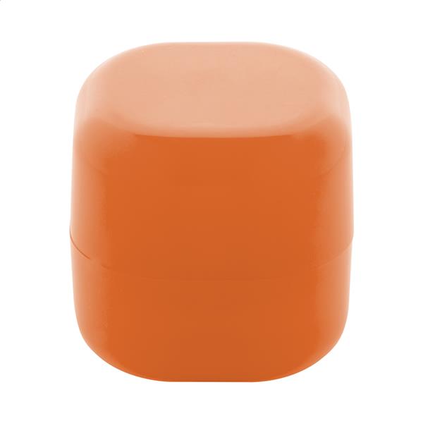 Waniliowy balsam do ust w pojemniku z ABS pochodzącego z recyklingu w kształcie sześcianu, z ochroną SPF15. Produkt nie zawiera składników pochodzenia zwierzęcego.
