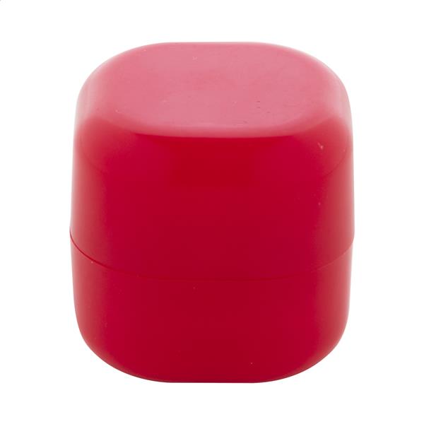 Waniliowy balsam do ust w pojemniku z ABS pochodzącego z recyklingu w kształcie sześcianu, z ochroną SPF15. Produkt nie zawiera składników pochodzenia zwierzęcego.