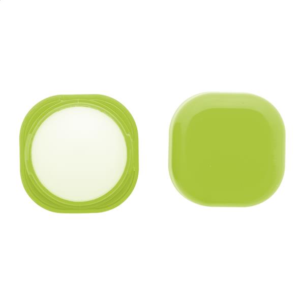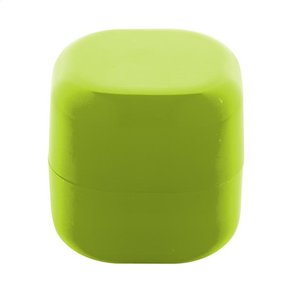 Waniliowy balsam do ust w pojemniku z ABS pochodzącego z recyklingu w kształcie sześcianu, z ochroną SPF15. Produkt nie zawiera składników pochodzenia zwierzęcego.
