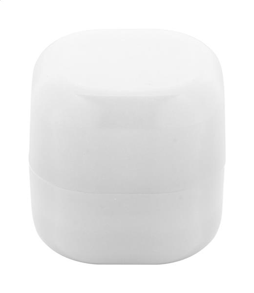 Waniliowy balsam do ust w pojemniku z ABS pochodzącego z recyklingu w kształcie sześcianu, z ochroną SPF15. Produkt nie zawiera składników pochodzenia zwierzęcego.