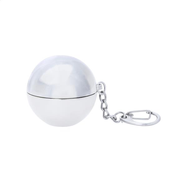 Okrągły, waniliowy balsam do ust w metalicznym pojemniku z metalowym brelokiem. Z ochroną SPF15.
