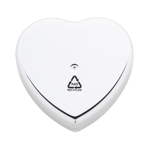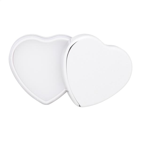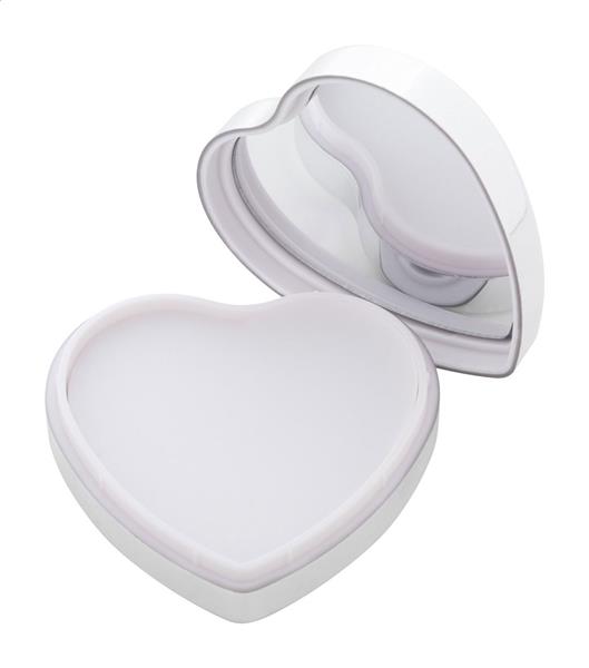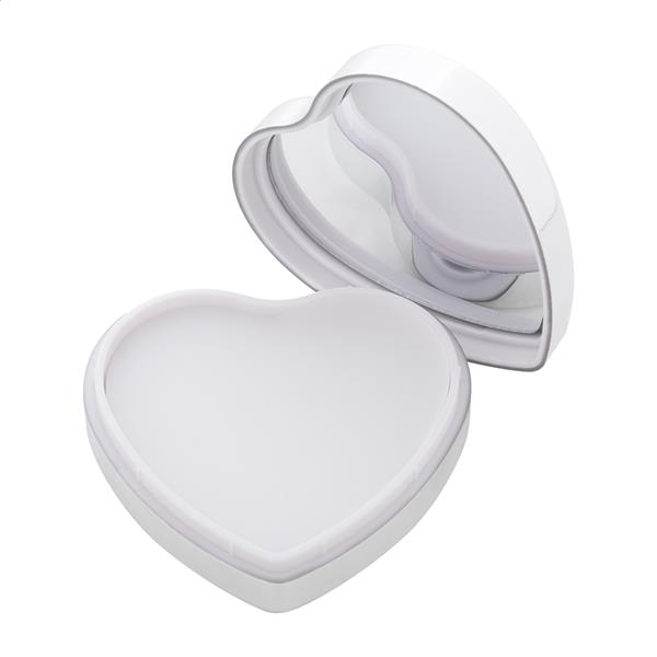 Waniliowy balsam do ust w opakowaniu w kształcie serca z metalicznym kolorem z ABS pochodzącego z recyklingu, z ochroną SPF15. Produkt nie zawiera składników pochodzenia zwierzęcego.