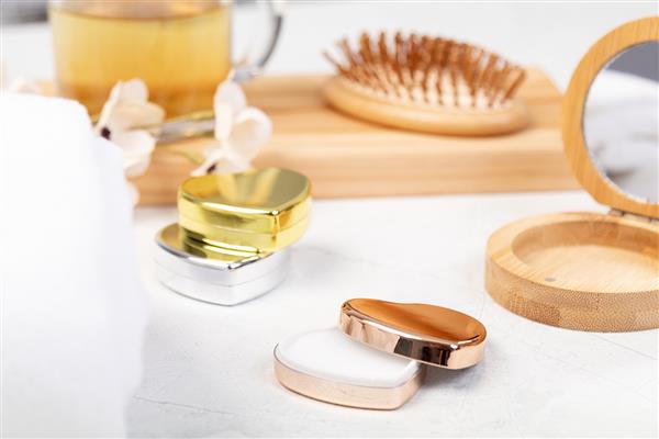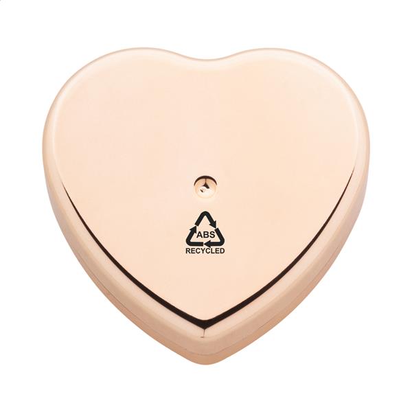 Waniliowy balsam do ust w opakowaniu w kształcie serca z metalicznym kolorem z ABS pochodzącego z recyklingu, z ochroną SPF15. Produkt nie zawiera składników pochodzenia zwierzęcego.