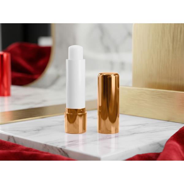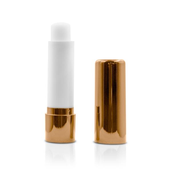Pomadka ochronna z filtrem przeciwsłonecznym SPF15 zatrzymującym 93% promieni UVB, waniliowy zapach, metaliczne wykończenie, produkt wykonany z ABS