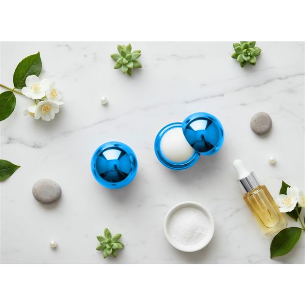 Pomadka ochronna z filtrem przeciwsłonecznym SPF15, który zatrzymuje 93% promieni UVB, w kształcie kuli, waniliowy zapach, posiada metaliczne, błyszczące wykończenie, produkt wykonany z ABS