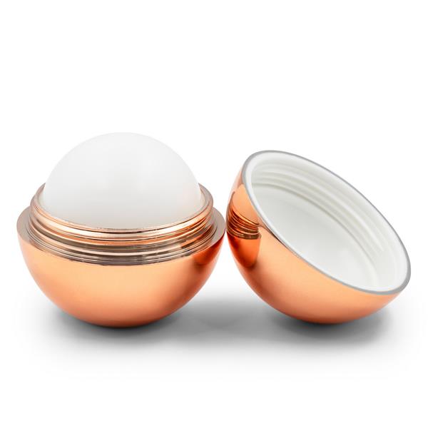 Pomadka ochronna z filtrem przeciwsłonecznym SPF15, który zatrzymuje 93% promieni UVB, w kształcie kuli, waniliowy zapach, posiada metaliczne, błyszczące wykończenie, produkt wykonany z ABS