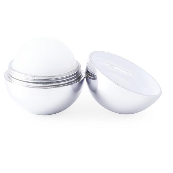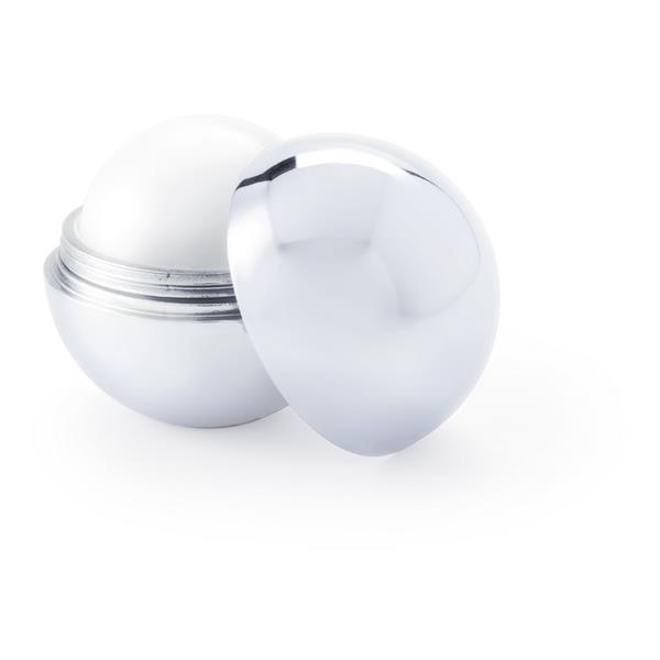 Pomadka ochronna z filtrem przeciwsłonecznym SPF15, który zatrzymuje 93% promieni UVB, w kształcie kuli, waniliowy zapach, posiada metaliczne, błyszczące wykończenie, produkt wykonany z ABS