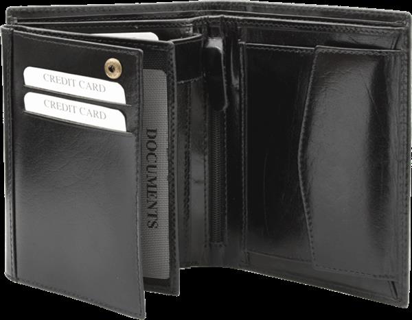 2 kieszenie na banknoty 2 kieszenie transparentne 3 kieszenie na dokumenty 9 kieszeni na karty kredytowe Kieszeń na bilon Kieszeń zapinana na suwak Pudełko drewniane w cenie