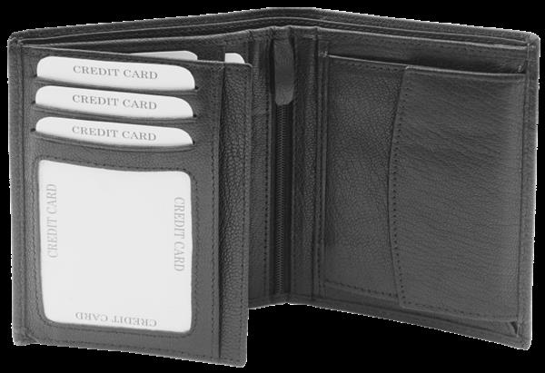 2 kieszenie na banknoty 4 kieszenie na dokumenty 8 kieszeni na karty kredytowe Kieszeń na bilon Kieszeń transparentna Kieszeń zapinana na suwak Pudełko drewniane w cenie Materiał: Skóra Nappa Rozmiar: 9,5 x 12,5 cm Kolor: czarny Znakowanie: 148100000