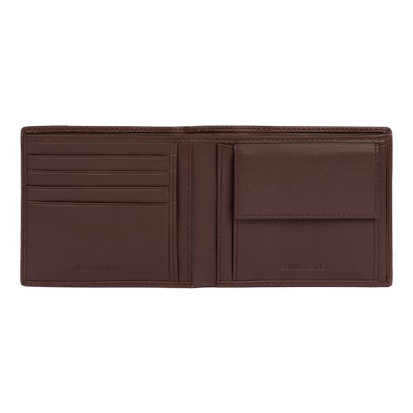 Portfel Bond wykonany z subtelnej ziarnistej skóry delikatnie sygnowany czarnym logo marki, posiada także kieszonkę na bilon. Rozmiar: 115 x 20 x 95 mm Kolor: Brązowy