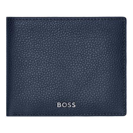 Ten składany portfel z kieszenią na monety jest wykonany ze starannie dobranej, najwyższej jakości granatowej skóry. Jest ozdobiony luksusową chromowaną tabliczką z podpisem BOSS i posiada wewnętrzną podszewkę z monogramem. Portfel zawiera: 2 przegrody na waluty 8 miejsc na karty 3 boczne przegródki 1 miejsce na monety Zgodnie z DNA marki BOSS, jest prosty, funkcjonalny, elegancki i minimalistyczny.