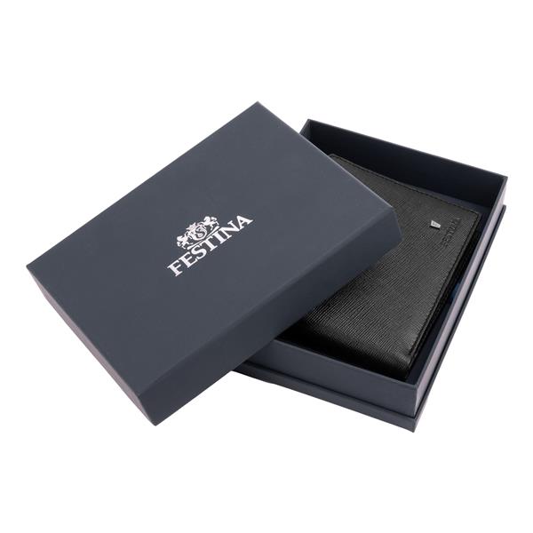 Kolekcja skórzanych dodatków `Chronobike` wykonana jest ze starannie wyselekcjonowanej skóry naturalnej o fakturze saffiano. Ta czarna wersja portfela sygnowana jest markowym logo z literką `F` w kolorze chromu oraz delikatnie tłoczonym na skórze napisem `Festina`. Minimalistyczny portfel na karty jest kompaktowy i bardzo praktyczny, posiada łącznie 12 miejsc na karty i oddzielną, dwuczęściową przegródkę na banknoty.