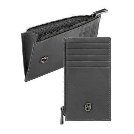 Linia Double B Saffiano wykonana jest ze starannie wyselekcjonowanych skór licowych, charakteryzujących się nadrukiem saffiano w matowym wykończeniu, które nadaje jej wyrafinowany, luksusowy charakter. Każdy element jest starannie wykonany i pięknie wykończony nową płytą Double B w głębokim, pistoletowym platerowaniu, stanowiącą nowoczesny, charakterystyczny detal. Dostępny w kolorze czarnym lub szarym, ten zapinany na zamek portfel na karty został zaprojektowany wokół obszernej głównej komory zapinanej na zamek z klinem i posiada pięć przegródek na karty z przodu – łącząc praktyczność z ponadczasową elegancją.