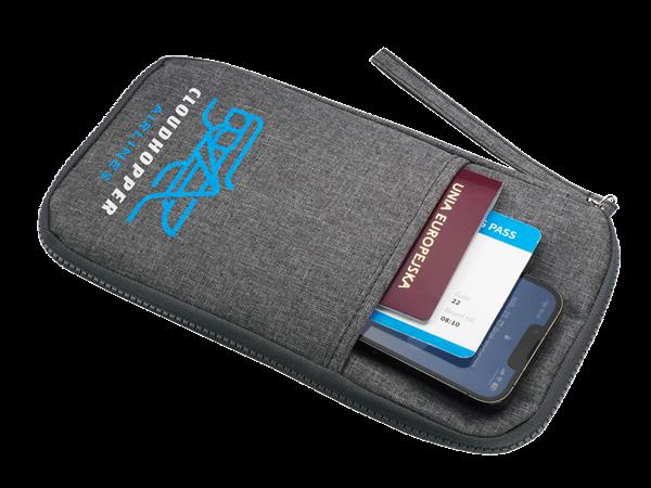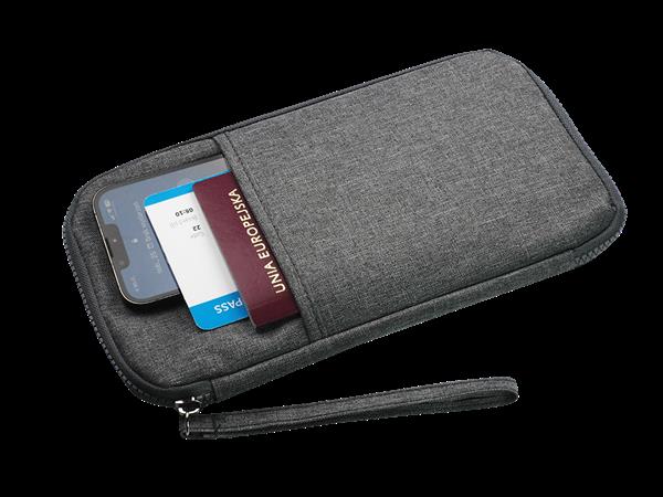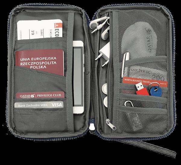 4 kieszenie na dokumenty 5 kieszeni na karty kredytowe Kieszeń na bilet lotniczy Kieszeń zapinana na suwak Kieszeń zewnętrzna Zamknięcie na suwak
