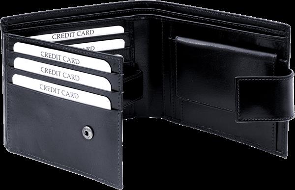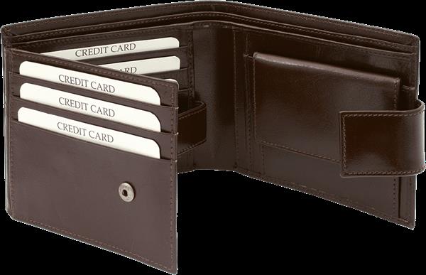 Cena nie zawiera okucia kamieniem szlachetnym 2 kieszenie na banknoty 5 kieszeni na dokumenty 6 kieszeni na karty kredytowe Kieszeń na bilon Kieszeń transparentna Zabezpieczenie RFID Zapięcie na zatrzask Pudełko drewniane w cenie
