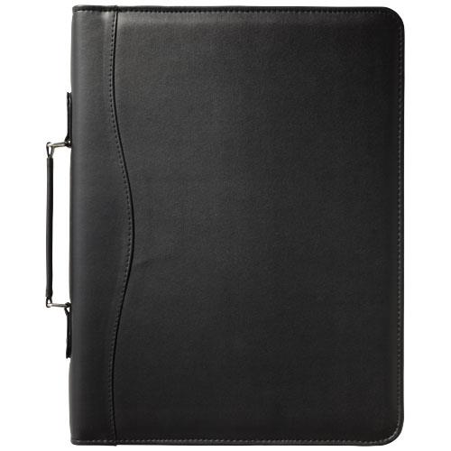 Portfolio zapinane na zamek z uchwytem, kółkami segregatora, zapinaną na zamek kieszonką i kieszeniami na dokumenty. W zestawie 20-kartkowy notatnik w linie. Nie zawiera długopisu i akcesoriów.