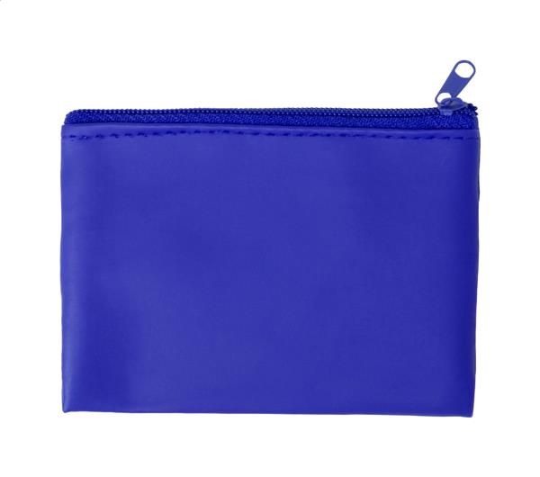Zapinana portmonetka z mikrofibry z brelokiem. Description: Zapinana portmonetka z mikrofibry z brelokiem. Primary Color: niebieski Material 1: Mikrofibra Rozmiar: 105×75×5 mm