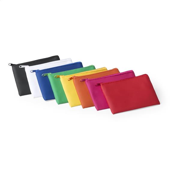 Zapinana portmonetka z mikrofibry z brelokiem.