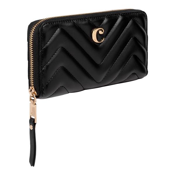 Portfel damski Odeon zapiany na zamek to ponadczasowe akcesorium wykonane z wysokiej jakości PU, złote dodaki nadają luksusowego charakteru. W ramach kolekcji Odeon można dobrać inne pasujące akcesoria. Rozmiar: 195 x 25 x 105 mm Kolor: Czarny