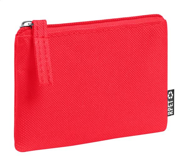 Zapinana portmonetka z 600D poliestru RPET z metką RPET. Description: Zapinana portmonetka z 600D poliestru RPET z metką RPET. Primary Color: czerwony Material 1: 600D Poliester z recyklingu PET Rozmiar: 105×80 mm