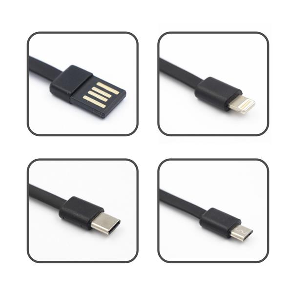 Power bank 10000 mAh z paskiem na rękę i 2 lampkami LED, cyfrowy wyświetlacz poziomu naładowania, wejście micro USB, wejście/wyjście USB-C, 2 wyjścia USB, możliwość ładowania trzech urządzeń jednocześnie (wymaga dodatkowego kabla z wejściem USB-C, nie jest dołączony), w komplecie 3 kable do ładowania: kabel z końcówką USB oraz końcówką kompatybilną z urządzeniami iOS, kabel z końcówką USB oraz USB-C, kabel z końcówką USB oraz micro USB